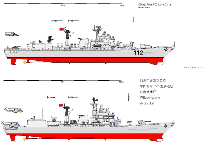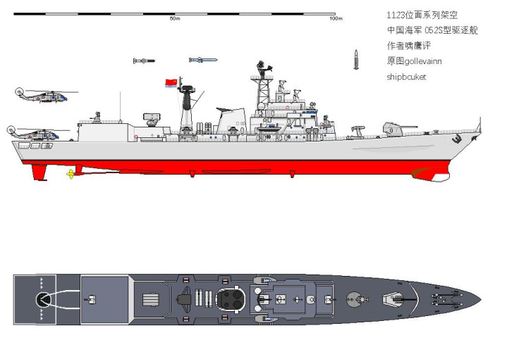 1987年9月052型驱逐舰首舰哈尔滨舰开建之时,和052型驱逐舰同平台但换装美制阿斯洛克反潜系统,奥托127MM速射炮,并可搭载两架HH-60海鹰直升机的052S型驱逐舰也已进入后期设计阶段,1992年元旦刚过,052S型导弹驱逐舰首舰正式开建。